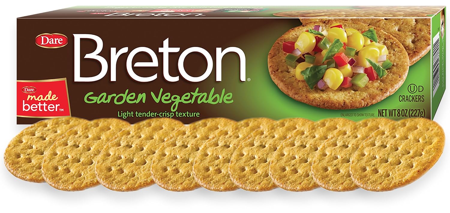 The nutritional value of a suggested serving of dare breton garden vegetable crackers includes 0 mg of cholesterol 0 mg of sodium 12 grams of carbohydrates 1 grams of dietary fiber 2 grams of sugar and 2 grams of proteins. Get full nutrition facts for other breton products and all your other favorite brands. Calories in breton crackers based on the calories fat protein carbs and other nutrition information submitted for breton crackers.