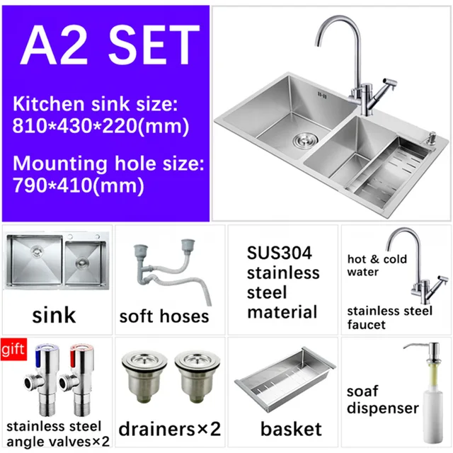 Kitchen Sinks With Faucet 3mm Stainless Steel Double Bowl Above